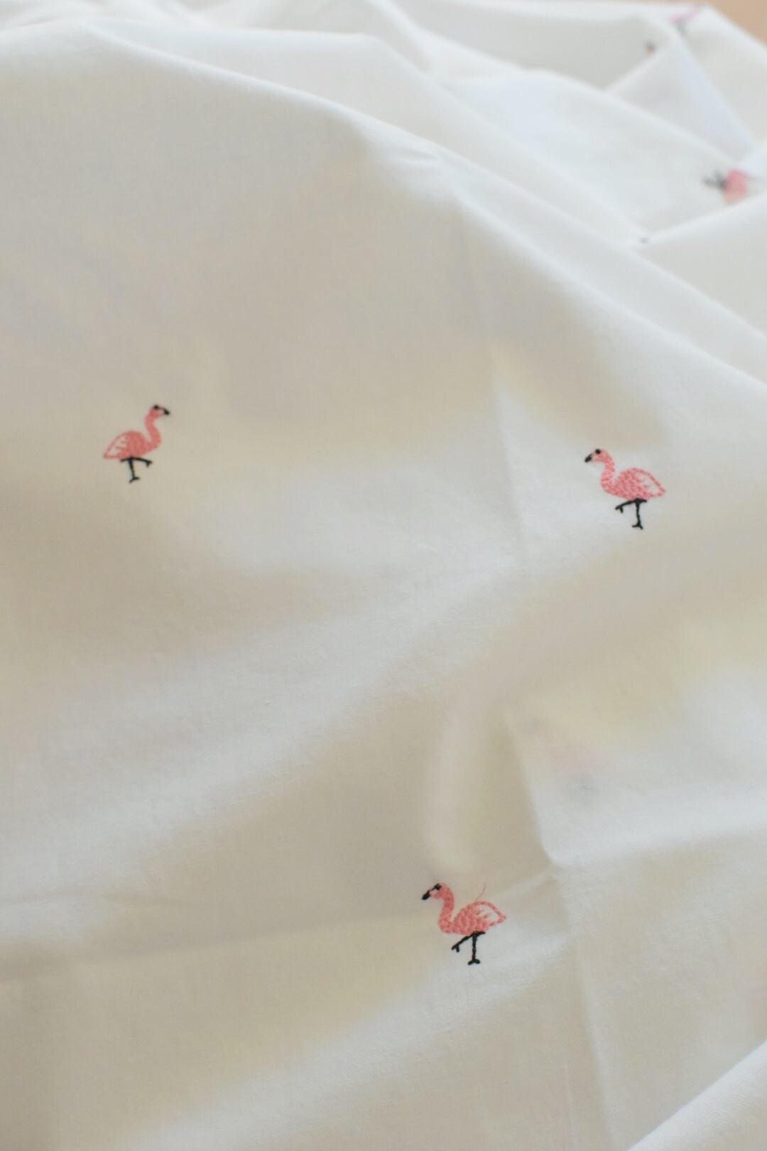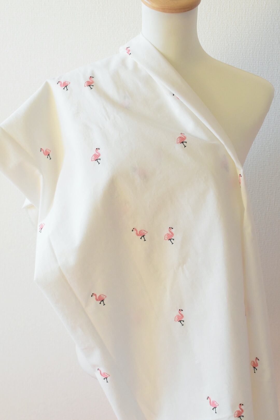 一つ一つフラミンゴが刺繍してある、コットン100%生地です。