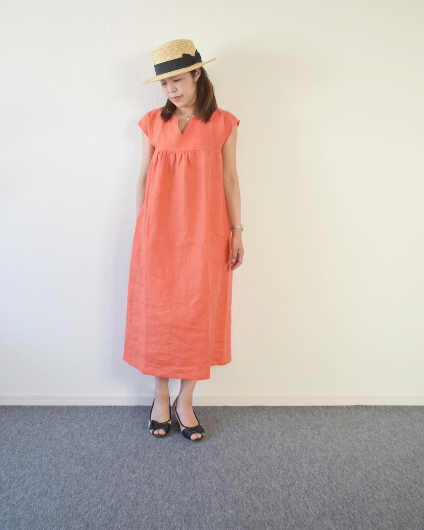 加えて、1年を通して活躍出来る、リネン100%のワンピースを作りました。