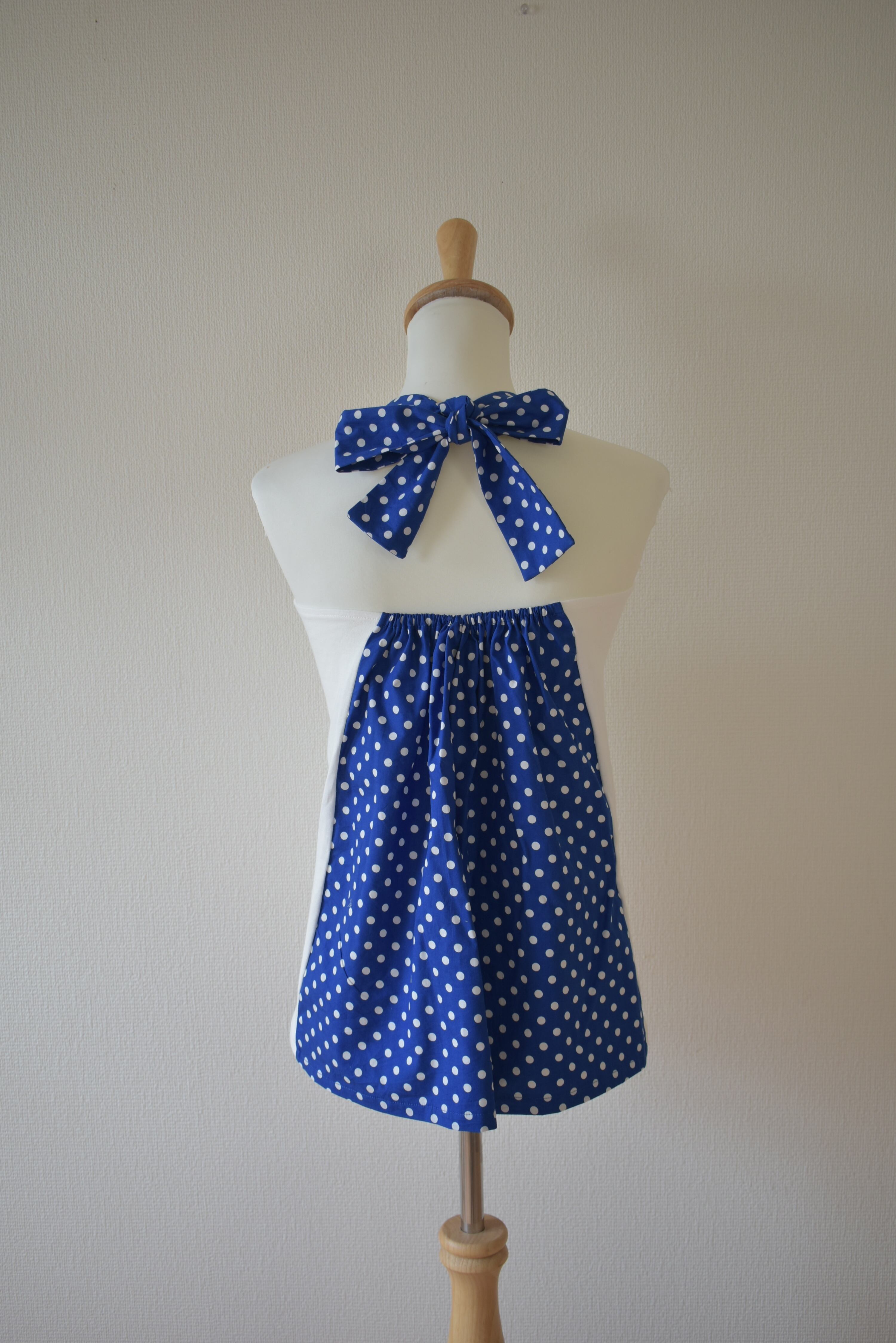FREEサイズ 青✖️規則的な白ドットのバックリボンキャミソール