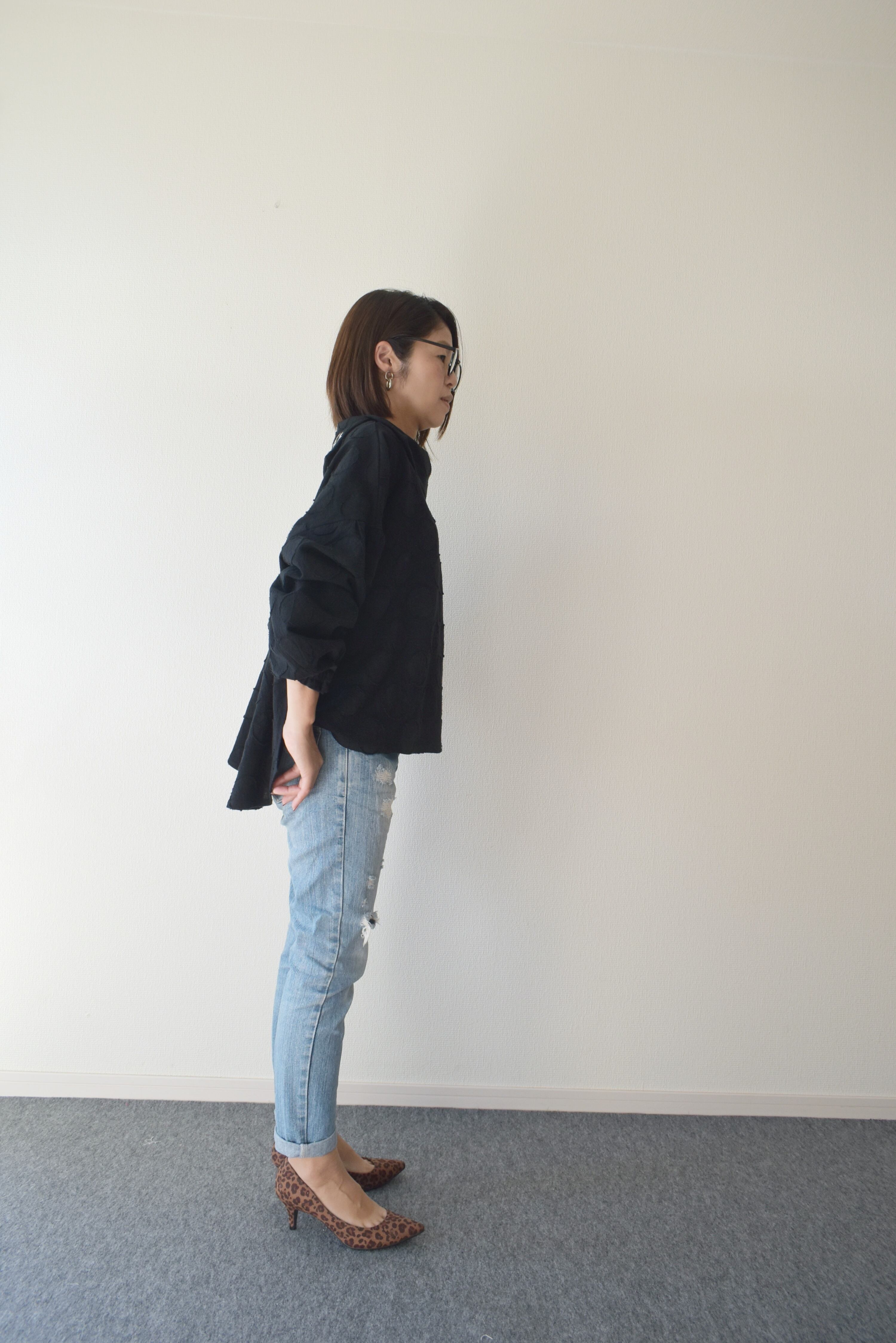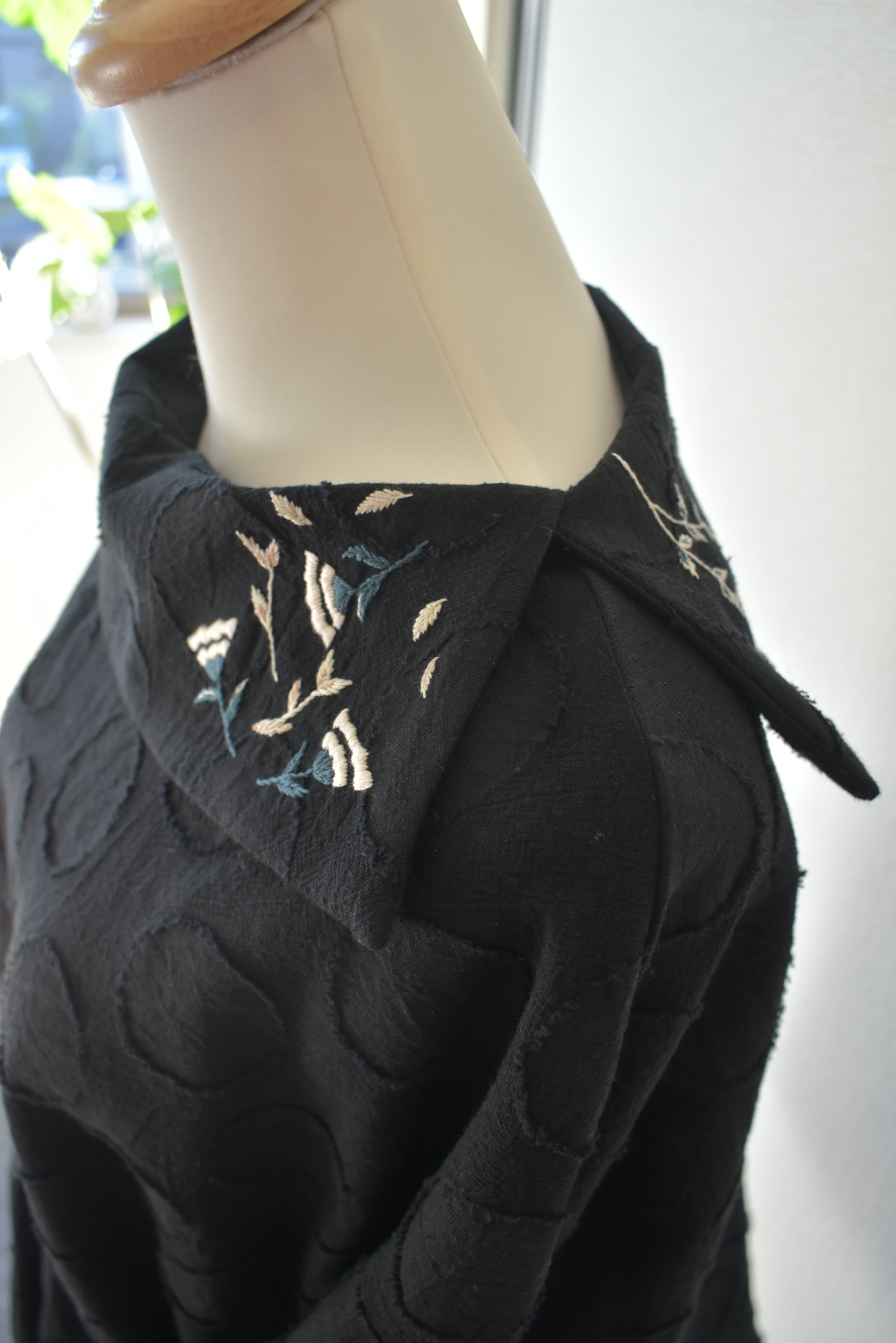 物語が始まる1枚〜手刺繍のロールカラーブラウス〜コットンリネンのサークルドット・ブラック