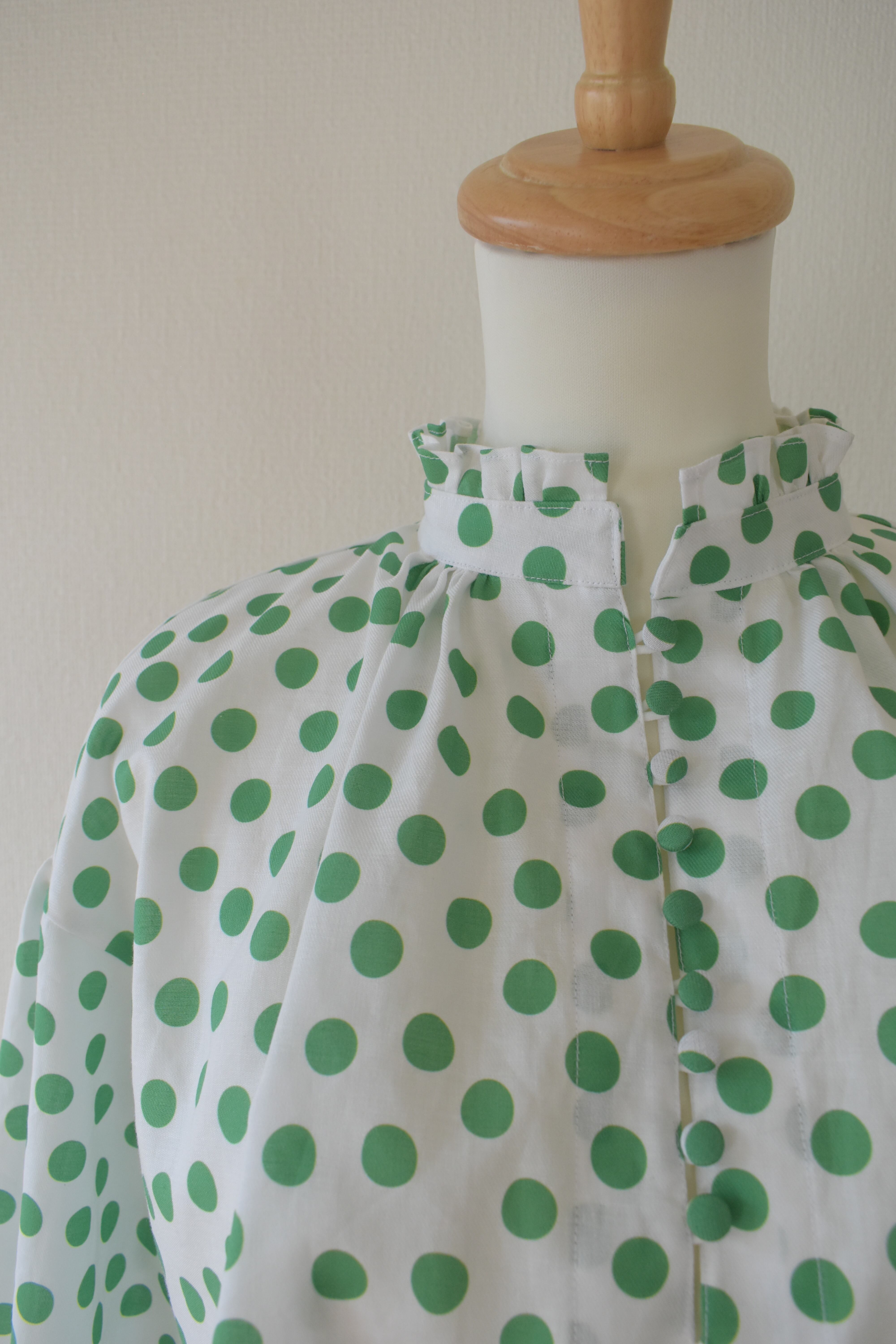 【受注生産】2つのパターンとサイズをチョイス お気に入りの柄で あなただけのブラウス 丸いフォルムが女性らしさを引き立たせる一枚 つぶつぶみどり