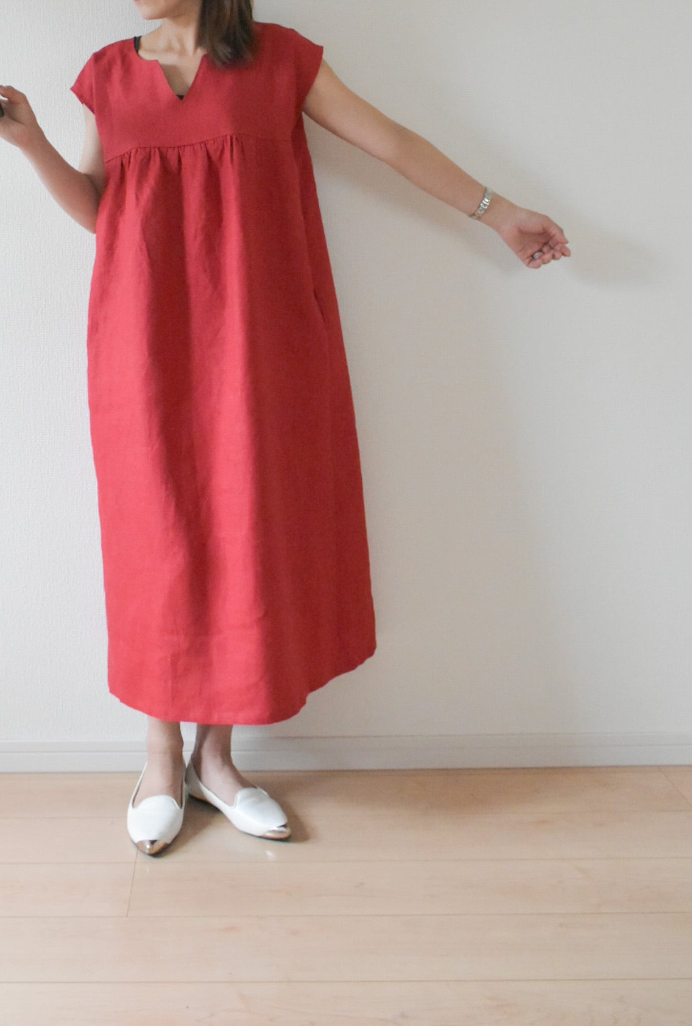 あなたはどっち派?フレンチスリーブ袖orプリーツ袖お好きな方を選んでね〜夕焼けのような赤色〜