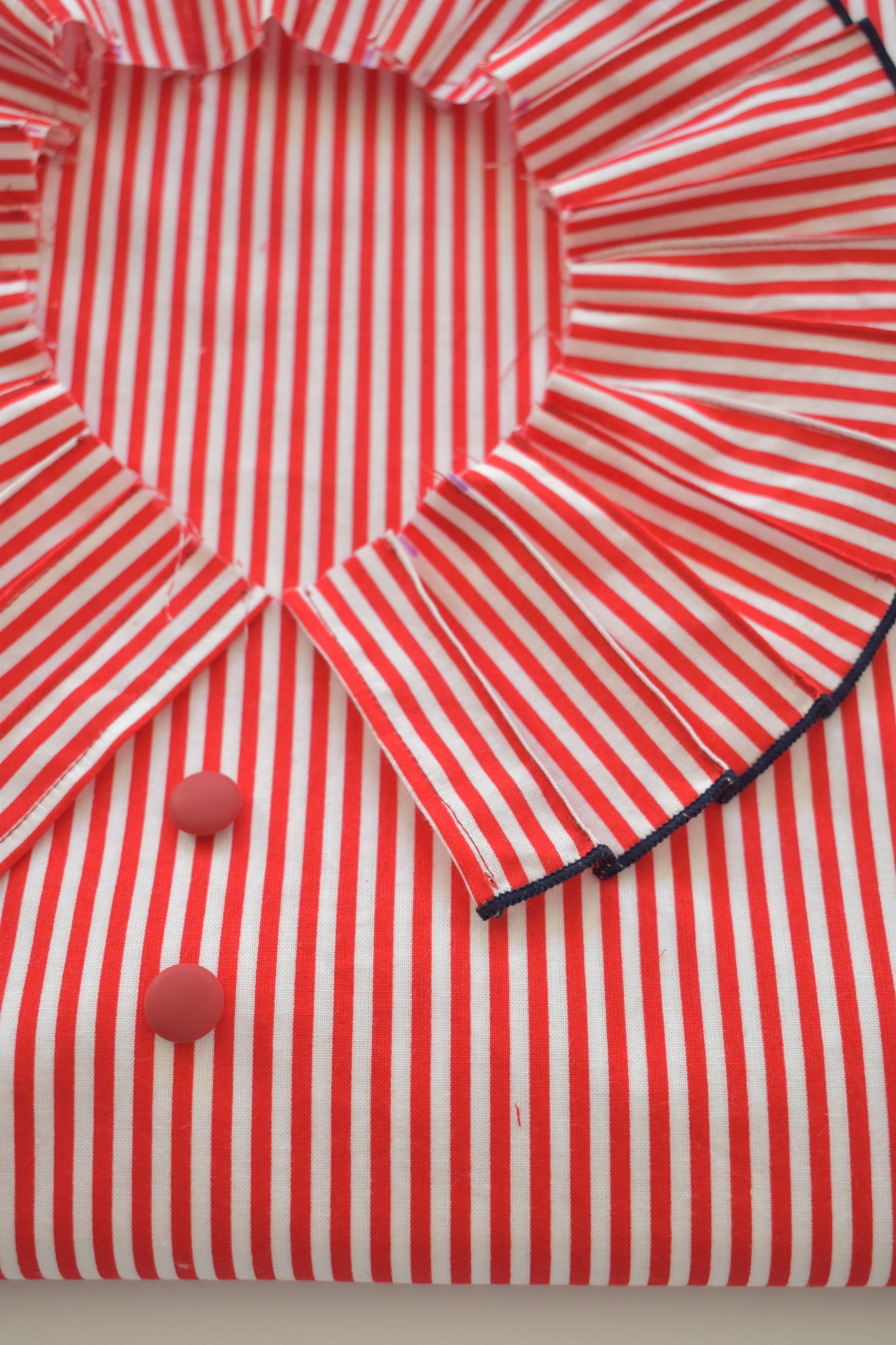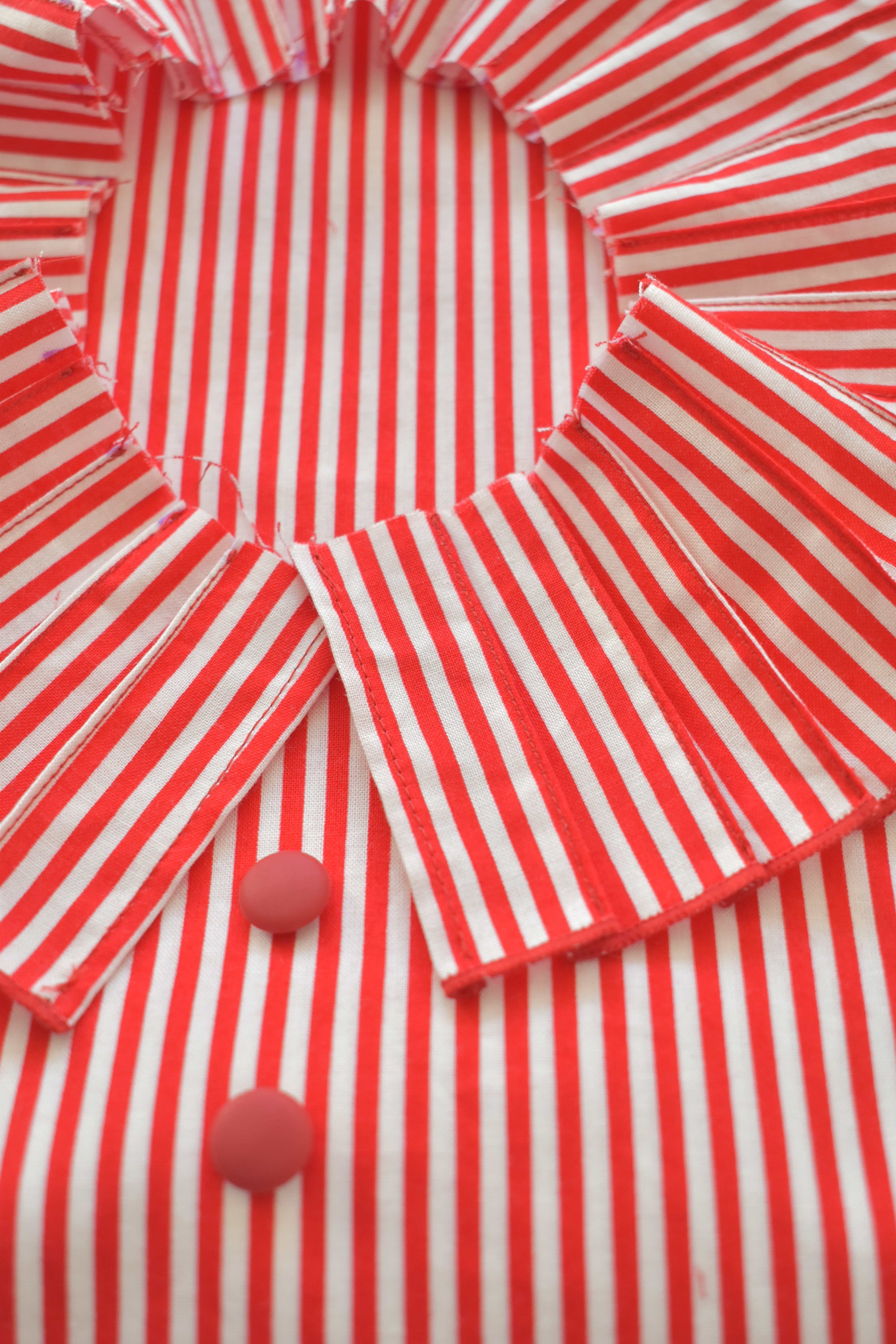 【受注生産】冬の装いに映える 襟プリーツのブラウス〜赤ストライプ〜